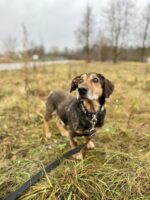 ŠATIRANA ist eine bezaubernde Dackel-Jagdhund-Mix-Hündin, geboren im Jahr 2017. Sie ist verträglich mit anderen Hunden und liebt Menschen über alles…